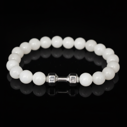 Центральным элементом браслета является декоративная бусина в форме гантели из гематита. Этот элемент добавляет украшению выразительный акцент и символизирует силу, движение и активный образ жизни.