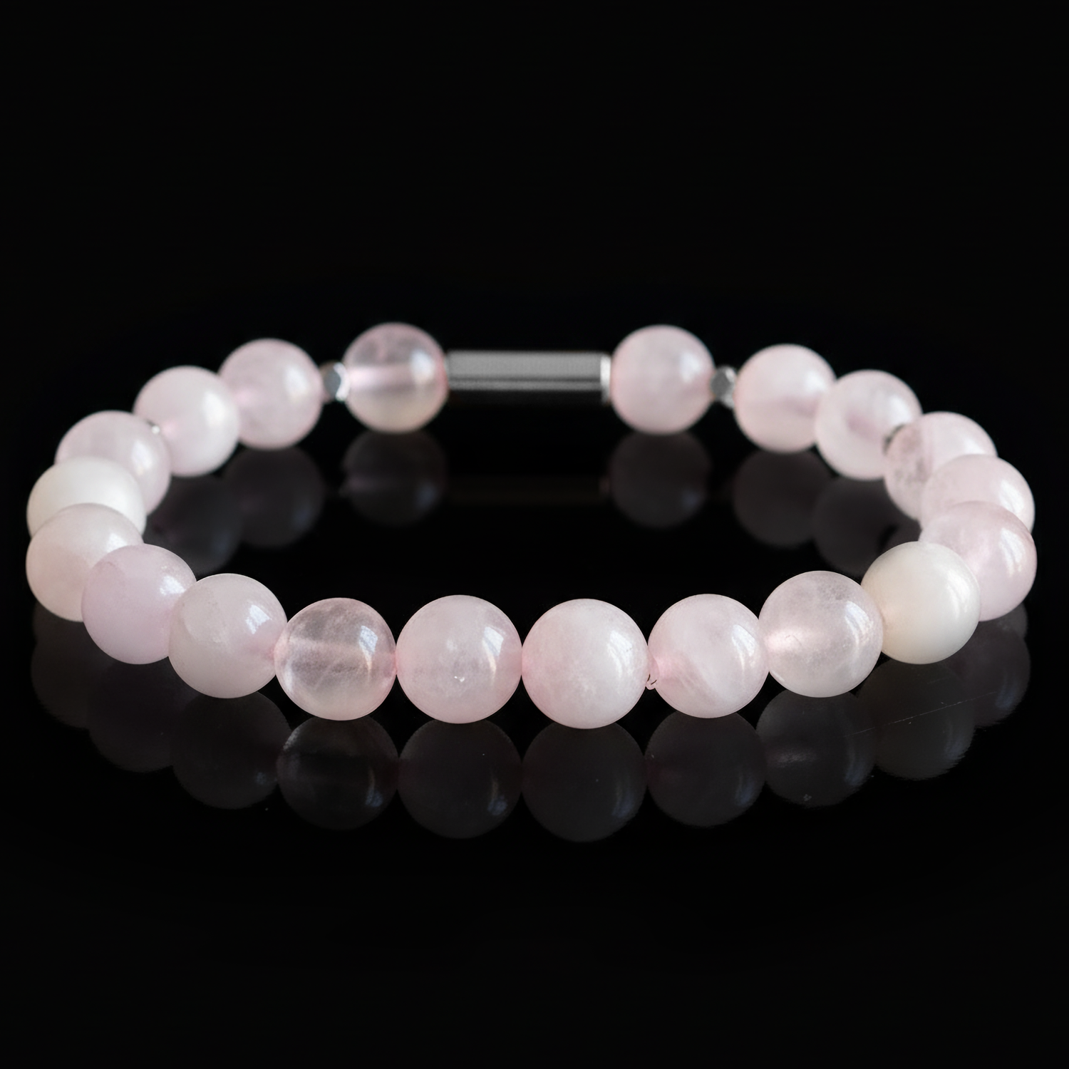 Женский браслет из розового кварца — изящный аксессуар из натурального камня, выполненный в лаконичном и универсальном дизайне.