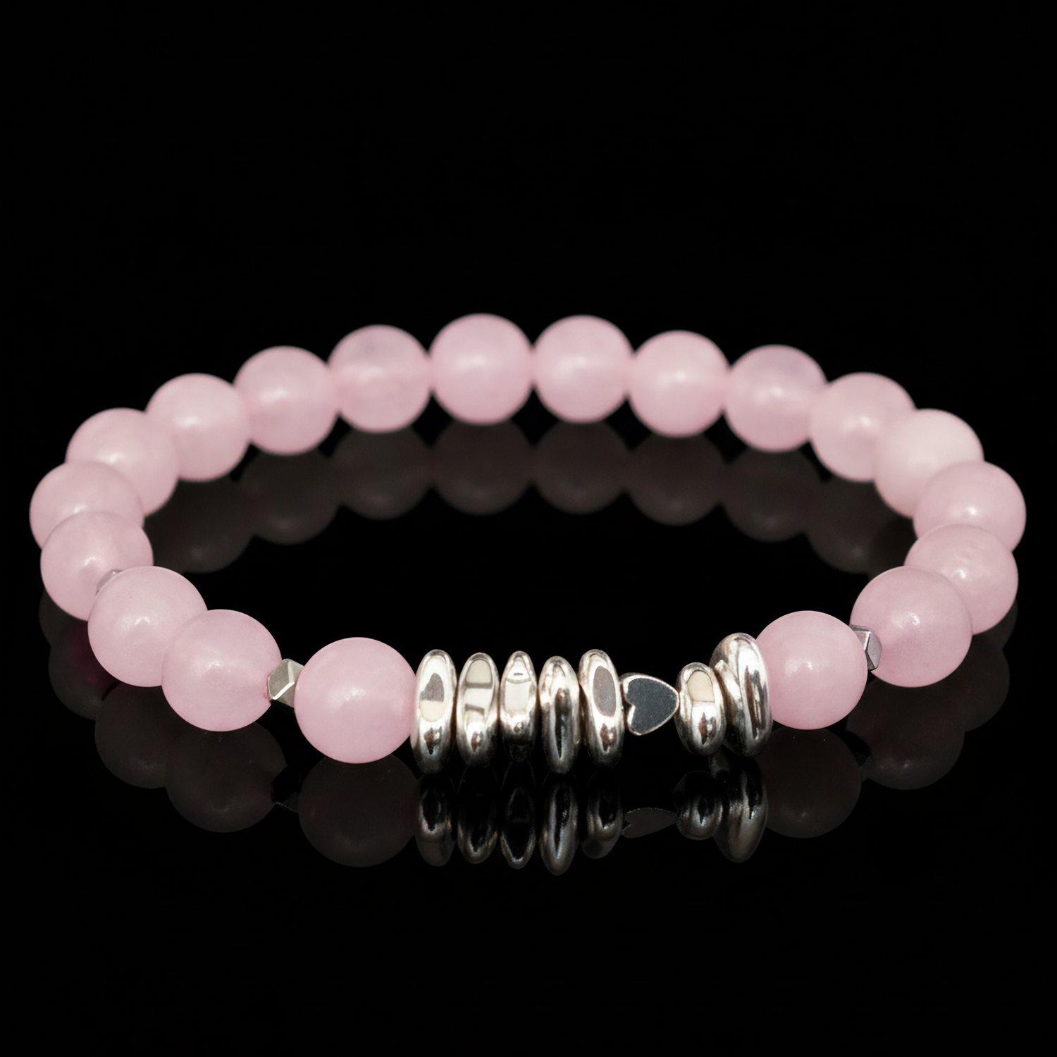 Браслет из розового кварца с сердцем легко сочетать с другими украшениями или носить как самостоятельный акцент. Он подойдет как для повседневного образа, так и в качестве подарка.