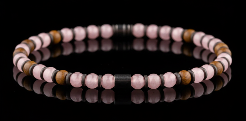 Для мужчины розовый кварц — это про спокойную уверенность, эмоциональную устойчивость и умение сохранять баланс между разумом и чувствами.